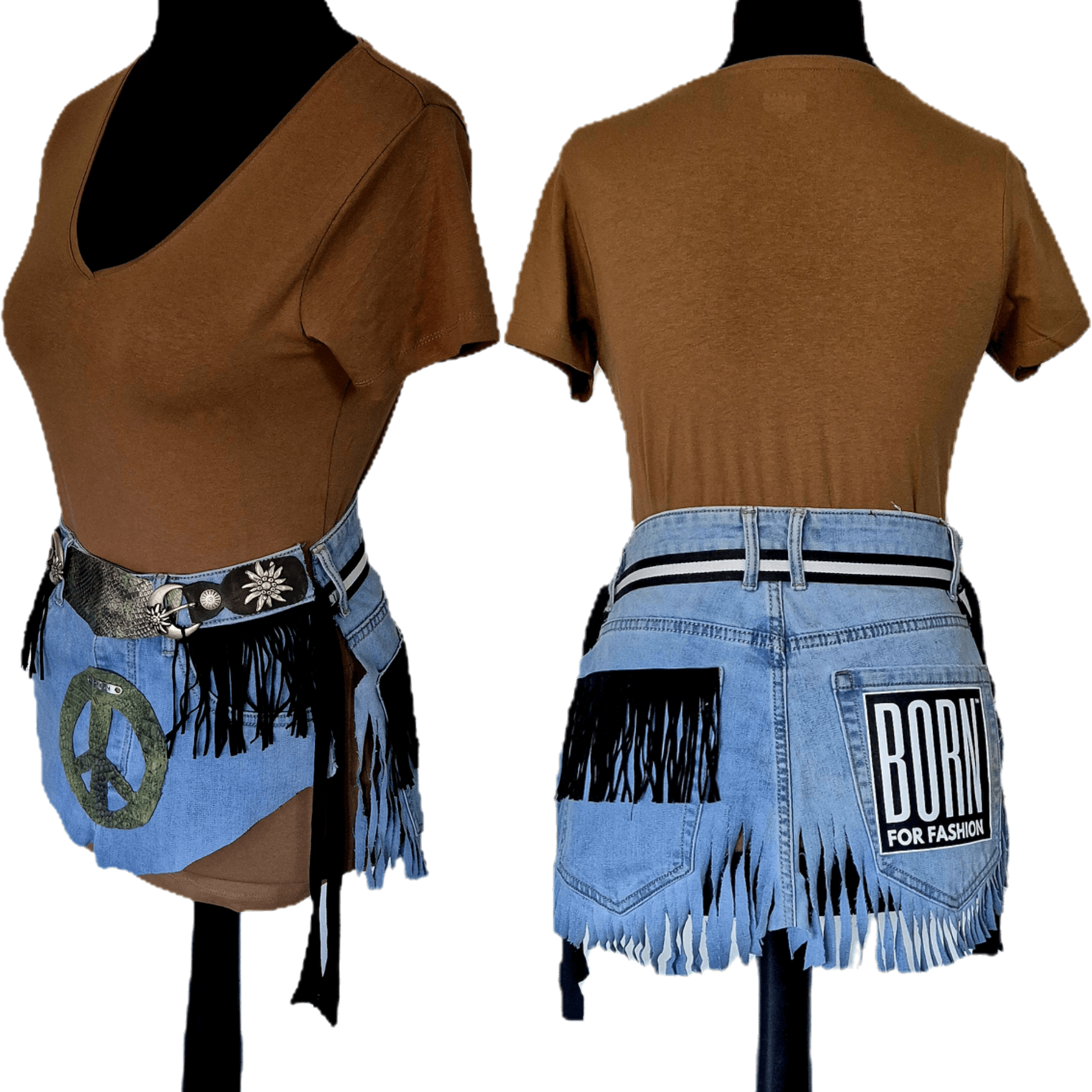 Step into your power with Amara Spirit – a one-of-a-kind denim belt skirt that radiates freedom, love, and soulful expression.